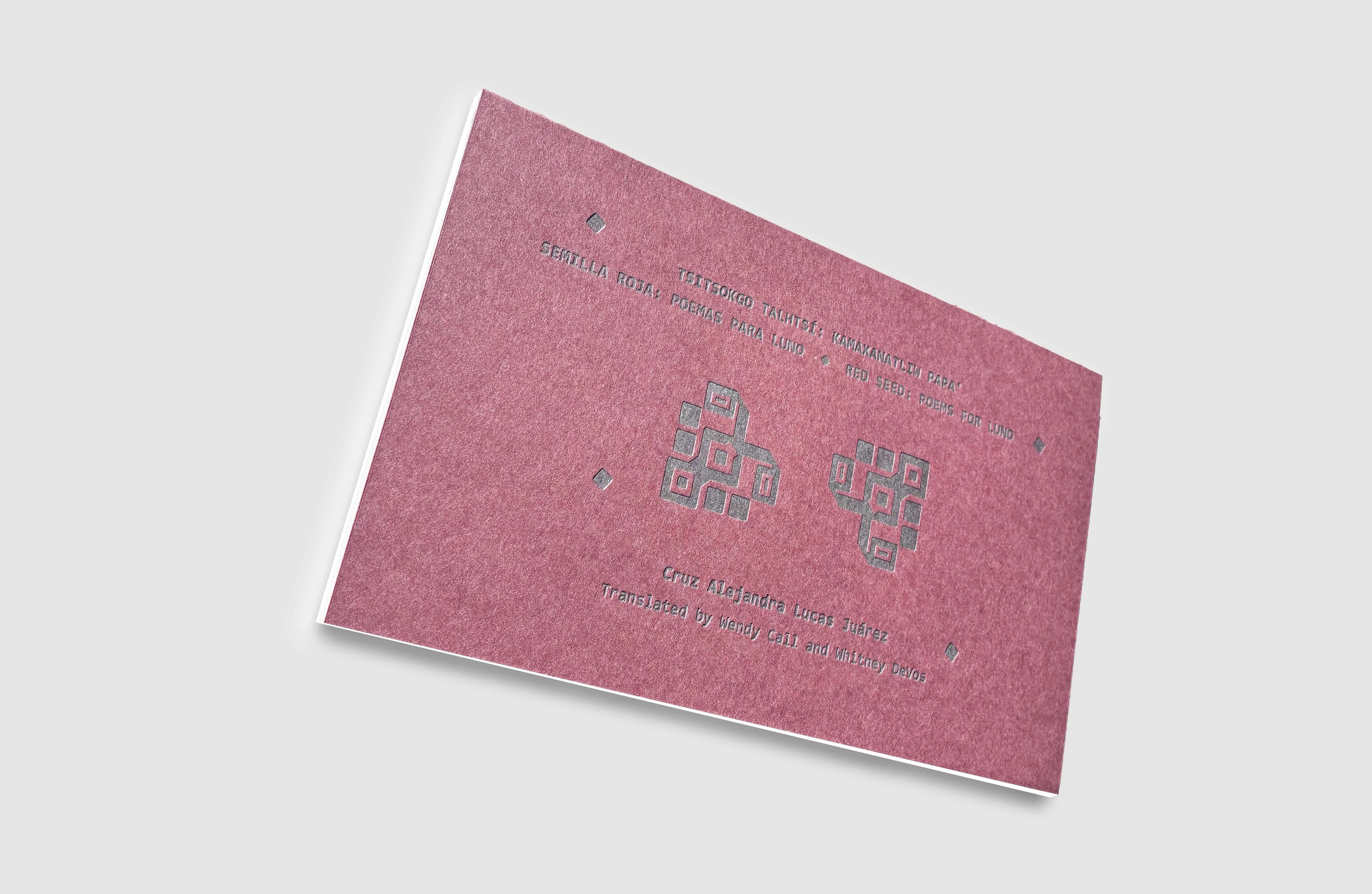 Through a voice at once intimate and collective, Lucas Juárez expands the powerful presence of Tutunakú roots to open up territories and to interweave desirous bodies, dream relationships, and the memories of women ancestors. This beautiful translation by Wendy Call and Whitney DeVos, in a precious handmade edition, affirms the trilingual (Tutunakú, Spanish and English) as an ethical strategy of listening to and translating the world. Red Seed collects twelve poems of women's sexualities and spirits in which body, language and territory are political spaces that Indigenous memory expands within and renews.—Maricela Guerrero, author of The Dream of Every Cell