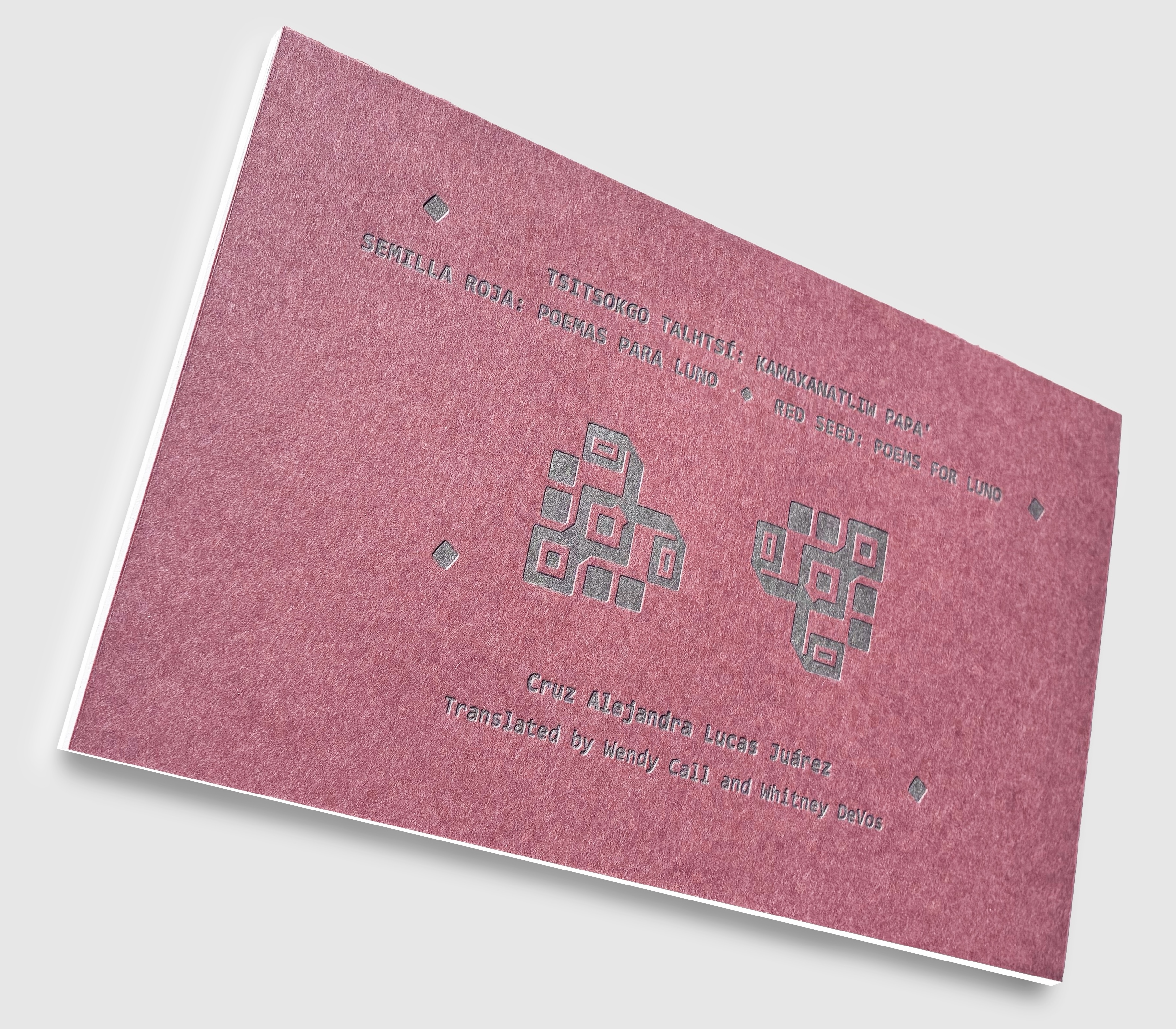 The subtitle, “Poems for Luno,” uses the masculine version of the Spanish word for moon (the feminine “luna”), referencing the Tutunakú belief that the moon (papa’) is the metaphorical father of all women. Papa’ / Luno bestows the gift of their womanhood, as regulator of the menstrual cycle; his monthly arrival is characterized as an amorous affair. This erotic relation is celebrated in Lucas Juárez’s poems, which weave together images of Luno as he appears to the speaker—and to her maternal ancestors—in dreams, quotidian moments, and Tukunakú stories.